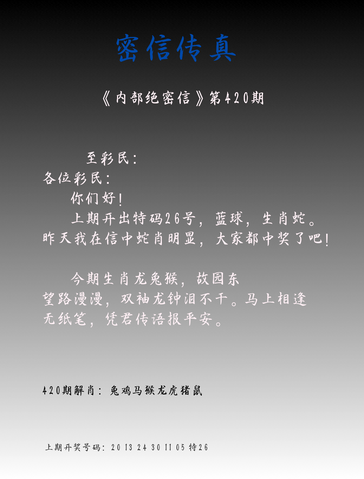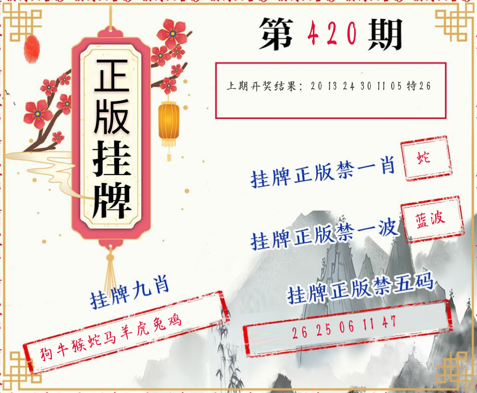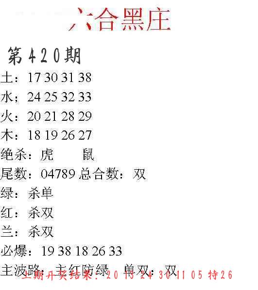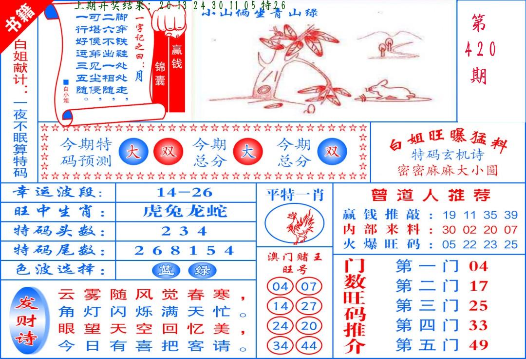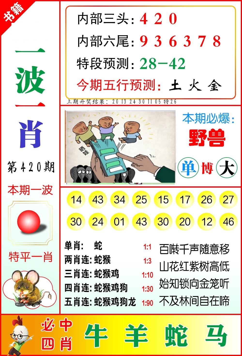 0419期绝杀一波 【蓝波】 开 26蛇错 |