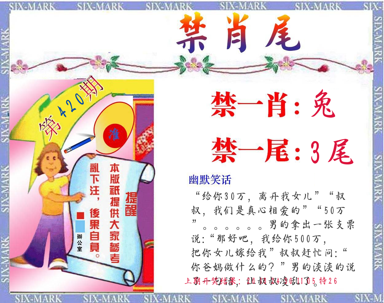 0420期绝杀1.肖1.尾 【猪肖4尾】 开 ??????? |