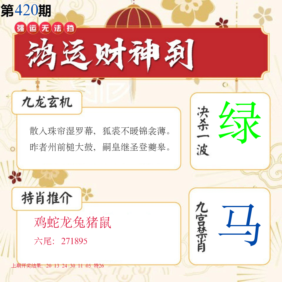 | 0420期推荐五肖: 猴鸡羊龙牛 ~~稳准狠 |