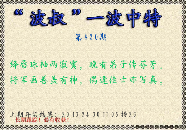 0420期绝杀一波 【红波】 开 ??????? |