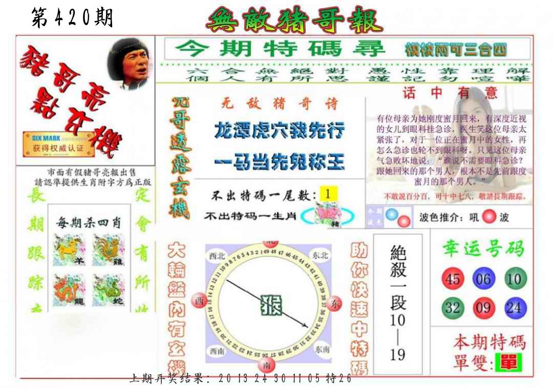 0413期平特【猪猪猪】开20猪对 |